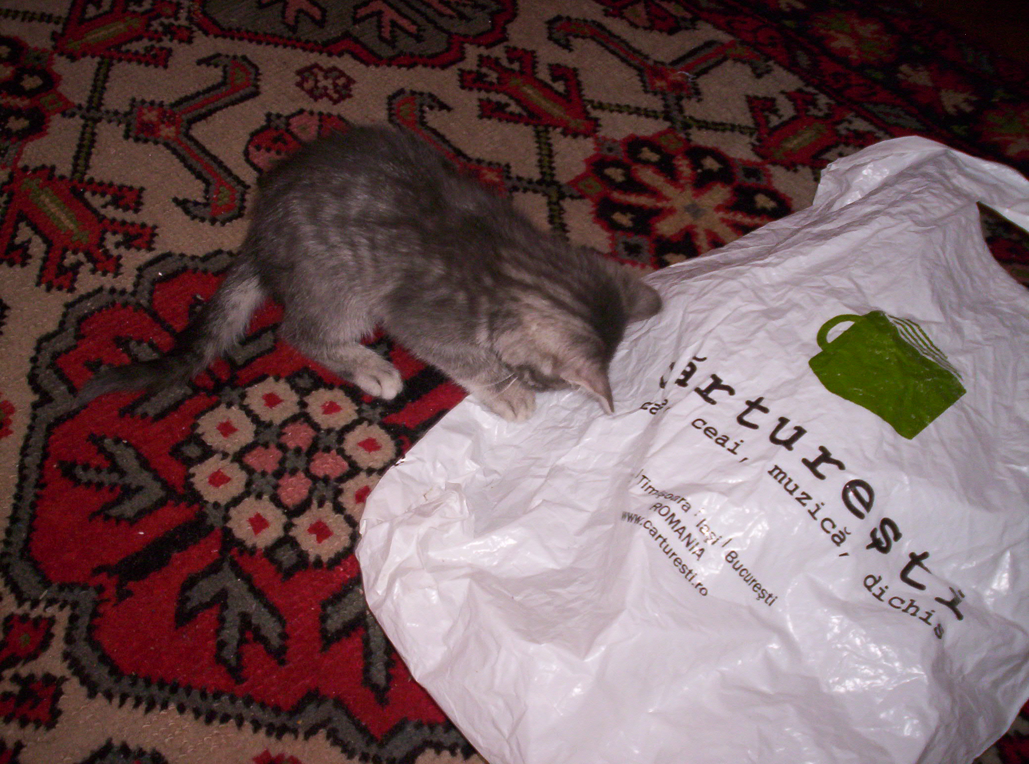 Click on the picture to see the larger version of Noodles, back when she was a kitten, playing with her favorite kind of plastic bag (the crunchy kind) :D