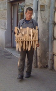 Today’s picture is of a guy selling hand-carved wooden spoons. You might remember this profession from one of my very oldest posts Hey, Hey We’re The Gypsies!
