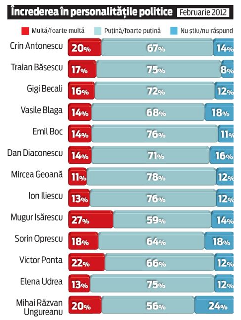 Nonetheless, I thought it was mighty interesting to see Daddy Isarescu (albeit still quite low) continues to be the person most Romanians have trust in. Considering he hasn’t held political office in over a decade, I can’t quite figure out exactly by what measure people are rating him.