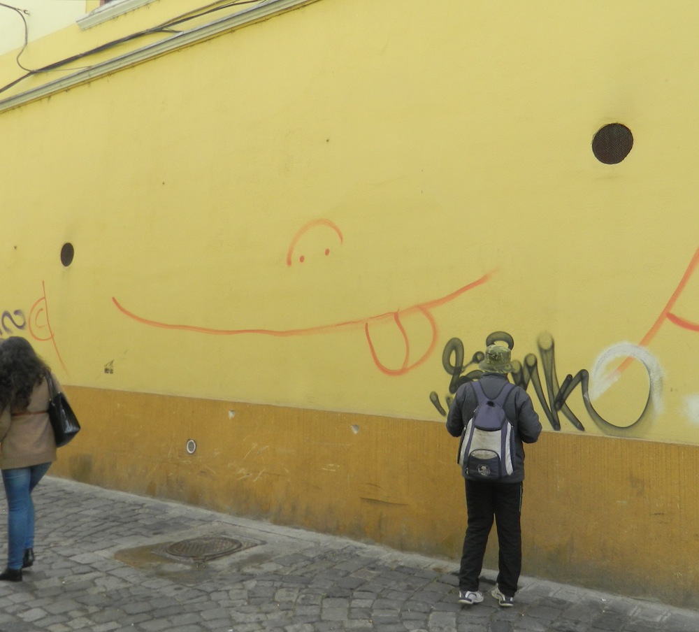 I especially like this one because the artist(s) just took a couple of really unremarkable features on the wall (the stains and the cracks) and then used them to anchor the drawing of the face.