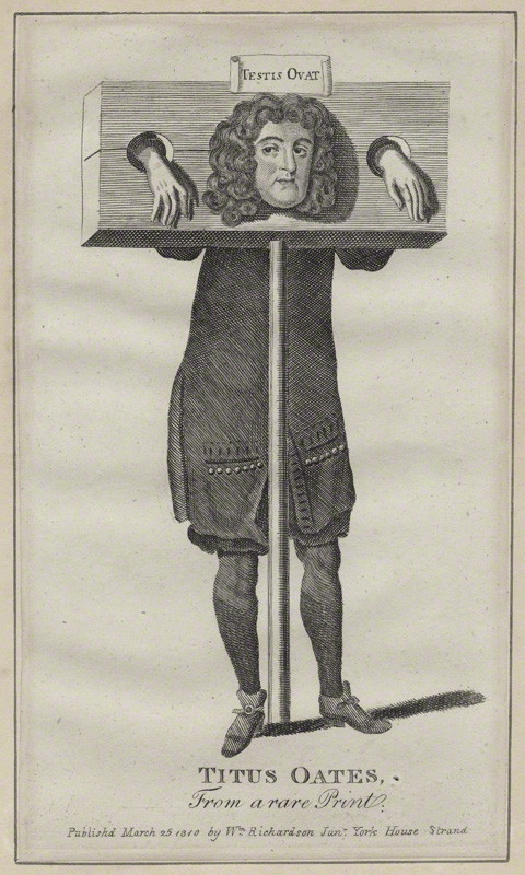 Titus Oates got his just desserts just three years after unleashing this wave of paranoia and hatred. In 1682 he was convicted of perjury and thrown in jail. A few months later he was fined 100,000 pounds (an astronomical sum) for “scandalum magnatum” and condemned to being whipped, degraded and pilloried five days every year for the rest of his life. The judge in his perjury trial stated that Oates “deserved more punishment than the laws of the land can inflict”.