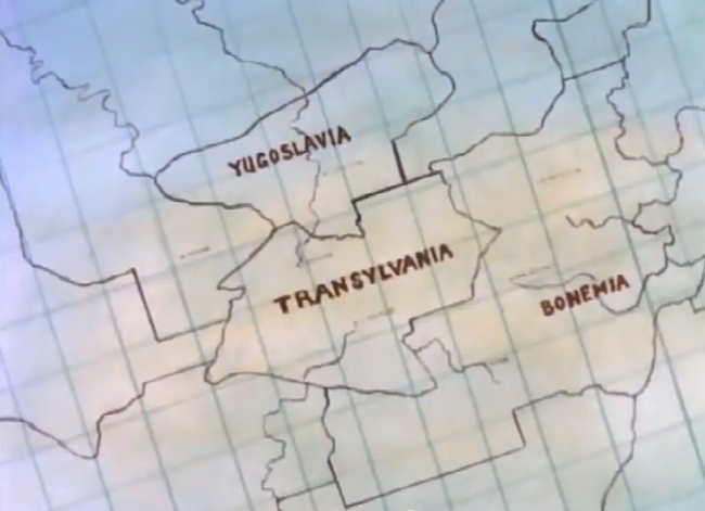 Case in point is the map above, which incredibly wrong on so many levels. This is a screenshot from a 1984 cartoon so Yugoslavia did, in fact, exist at the time but was far, far larger than pictured here (it’s now split into between 5 and 8 different countries, depending on whom you ask). Likewise, Bohemia (a region of the Czech Republic) is far smaller than pictured here while the shape of all three regions is just completely wrong. And they’re not even oriented correctly as the Czech Republic is the furthest west, followed by Yugoslavia and then Transylvania being the furthest east.