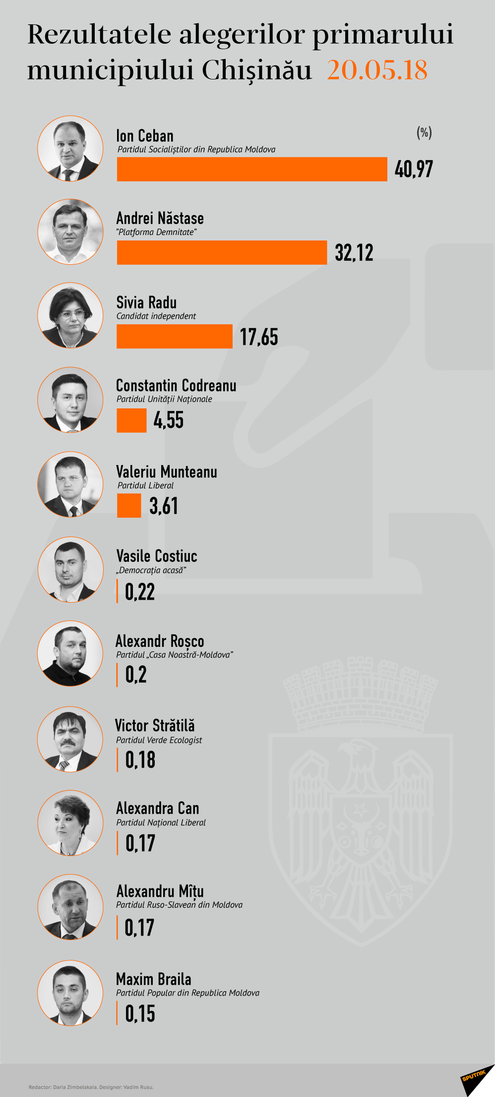As you can see, Munteanu got 8,026 votes or 3.61% of all votes cast, putting him in fifth place out of 11 candidates.