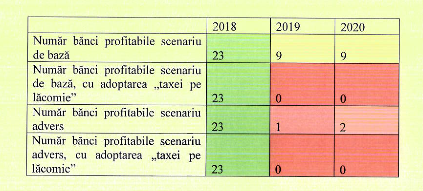 If the proposal to collect taxes on a trimestrial basis [i.e. four times a year] is adopted, we predict that eight banks which now play an important role in the [Romanian] economy might not have enough funds to continue operating by the year 2020. We urgently ask that the Ministry of Public Finance take into consideration the impact on the financial stability of the country before taking any action.