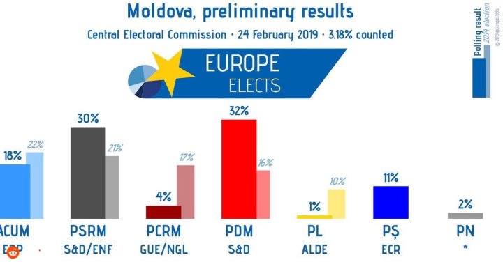 Just as predicted, the Socialists came in first with 32% of the vote. ACUM got around 26% of the vote, and Plahotniuc’s party is down to just under 24% (official results here).