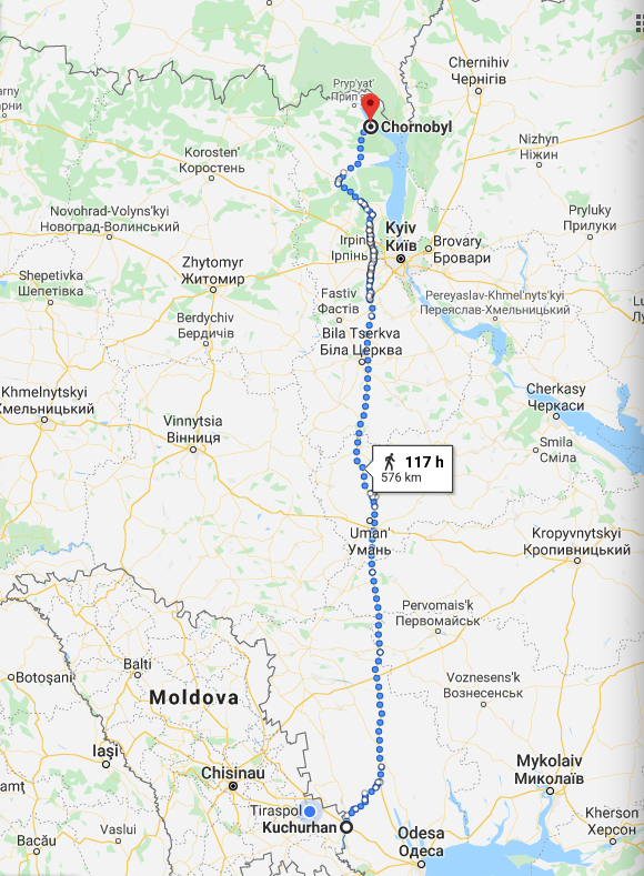 Kuchurgan is nearly 600 kilometers from Chernobyl, a journey that would take you at least eight hours to drive. Obviously, Hannah Lucinda Smith has never made that journey.