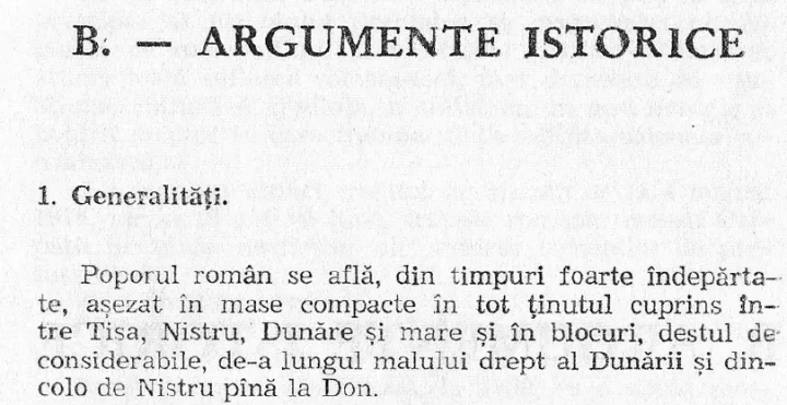 Since time immemorial, the Romanian people have been living in a high-density population mass in all the lands between the Tisa, Dniester, Danube, and the [Black] sea, and in fairly considerably large population clusters on the right-hand [southern] side of the Danube as well as beyond the Dniester all the way to the Don.