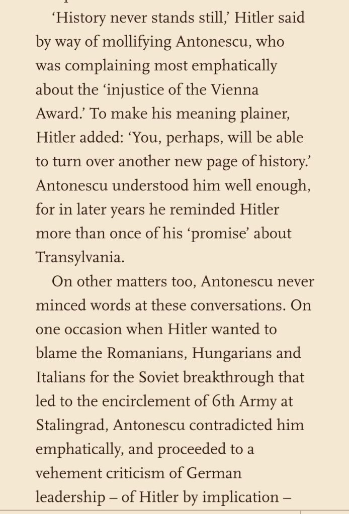 That last part, where Antonescu (who considered himself a master military tactician) was bitching about Hitler’s military tactics at Stalingrad, seems almost suicidally reckless.