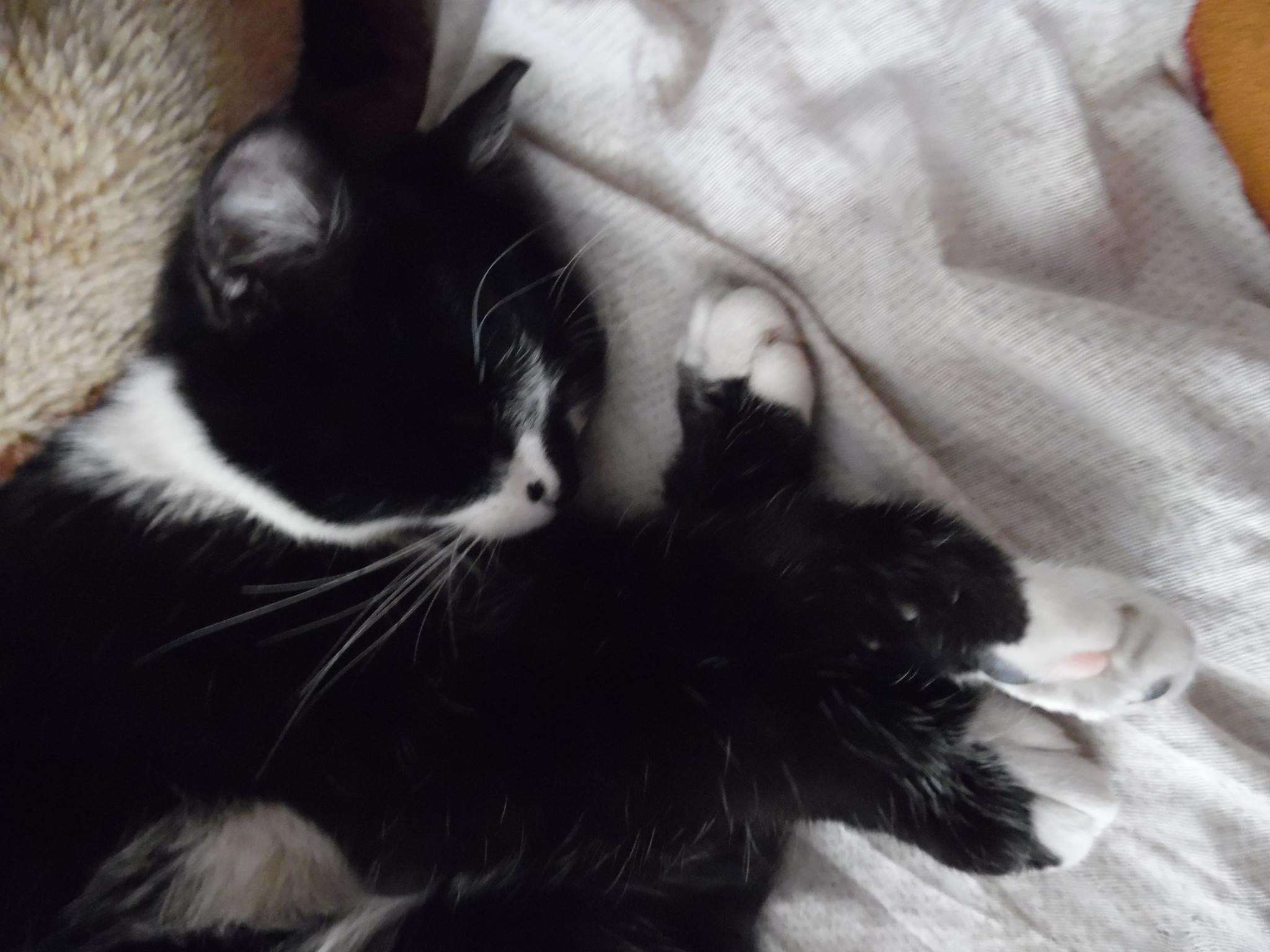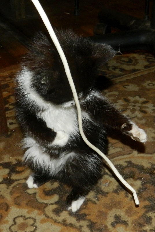 One of Neva’s very many kitten tricks was to wait until we put food on the table and then try to come up from underneath and hook it with her paw.