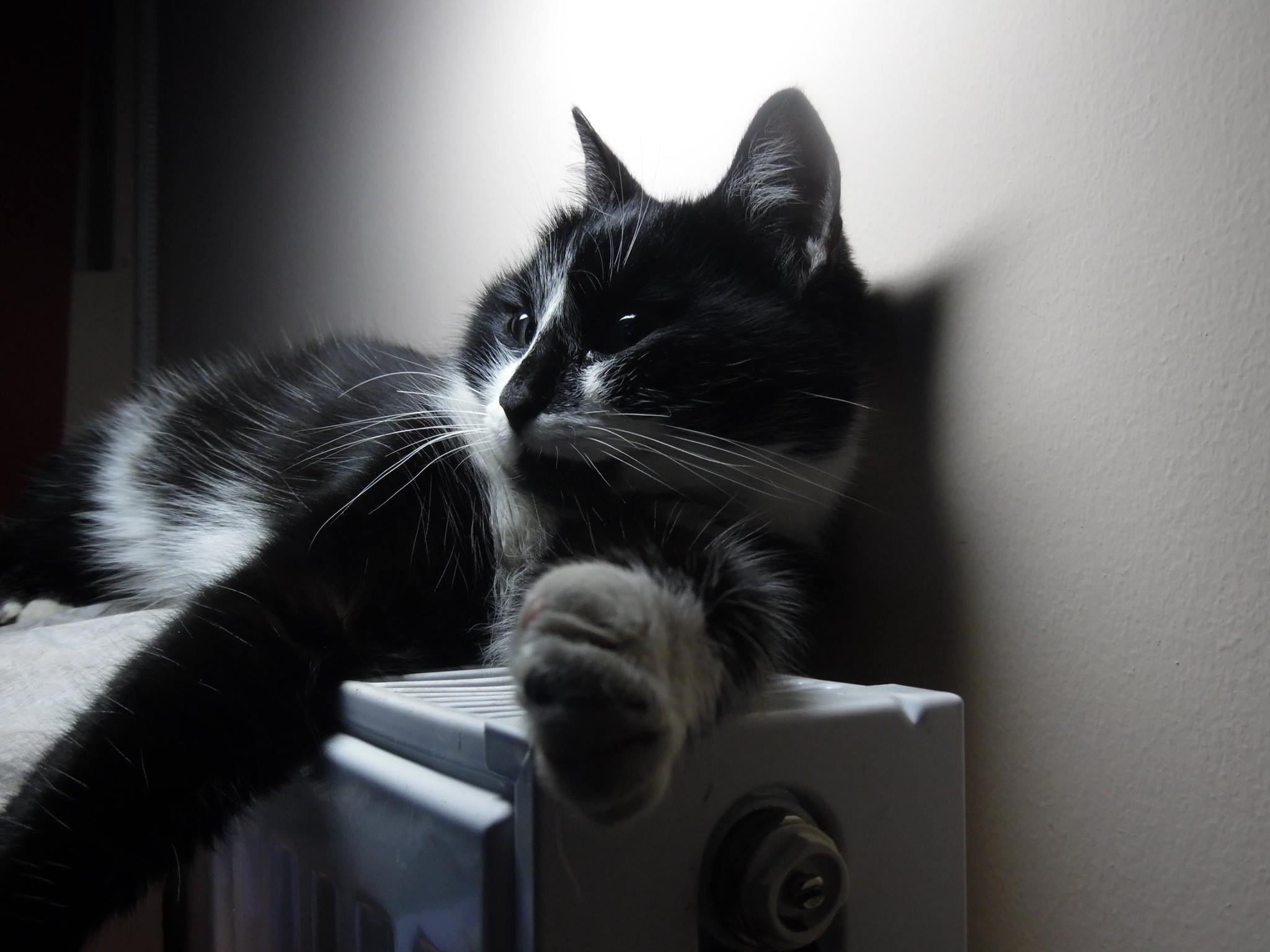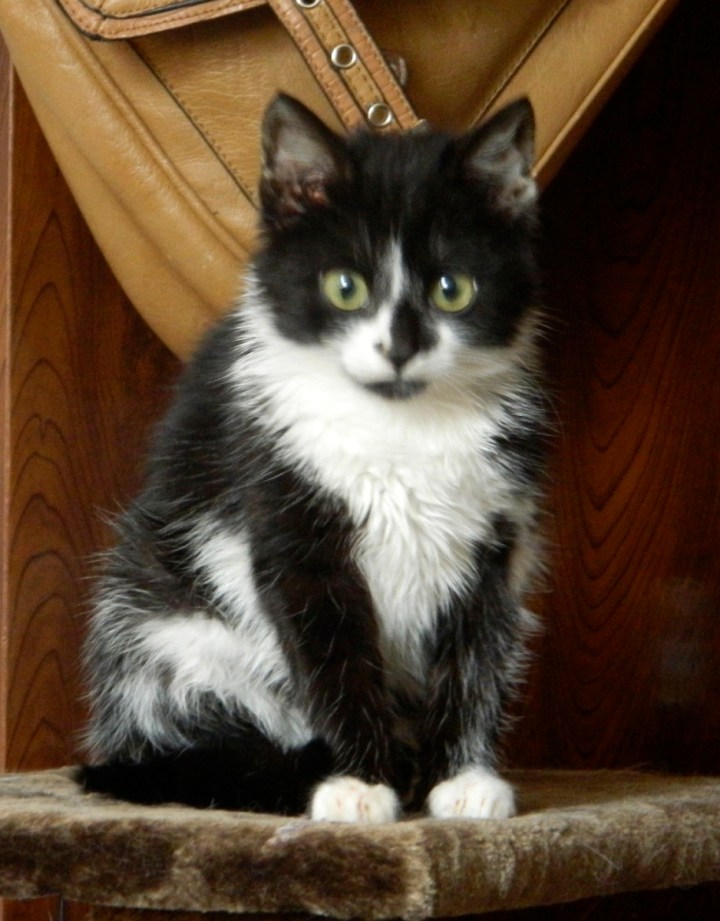 At the entrance to our apartment building was a small black and white kitten, clearly cold and miserable.