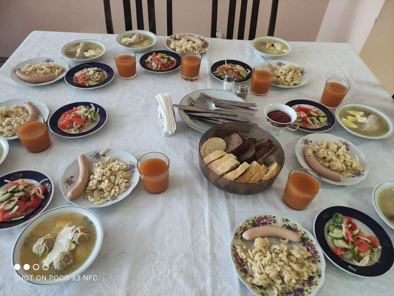 One last thing – here’s a photo posted by the PMR government of the food being served to Ukrainian refugees. Looks like some kind of juice (tomato?) to drink, two kinds of bread, a sausage, some form of pasta, pickled beets, a cucumber and tomato salad, and some kind of soup (with chicken and dumplings? not sure).